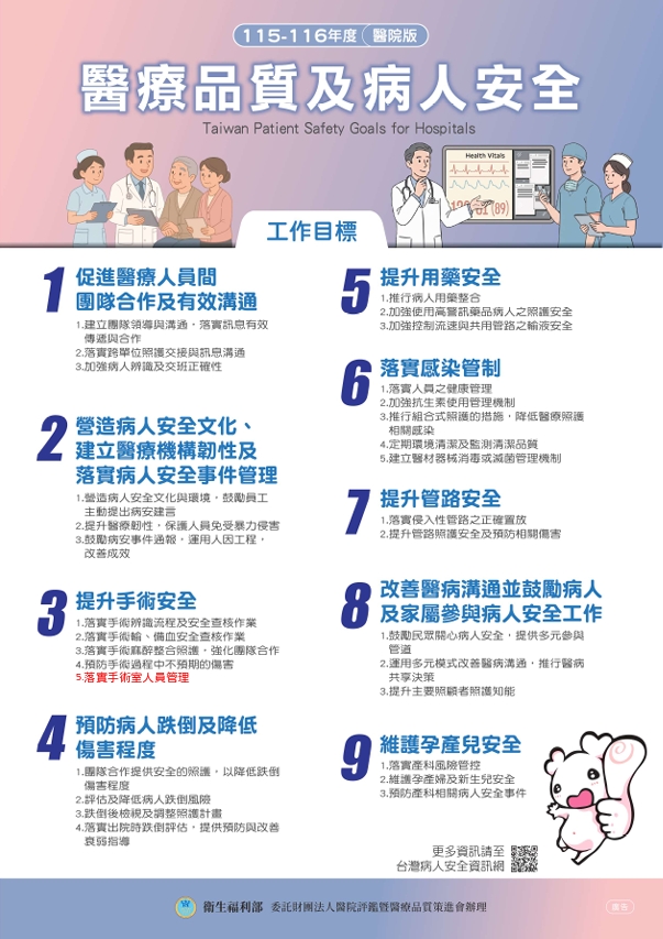 115-116年度 醫品病安工作目標