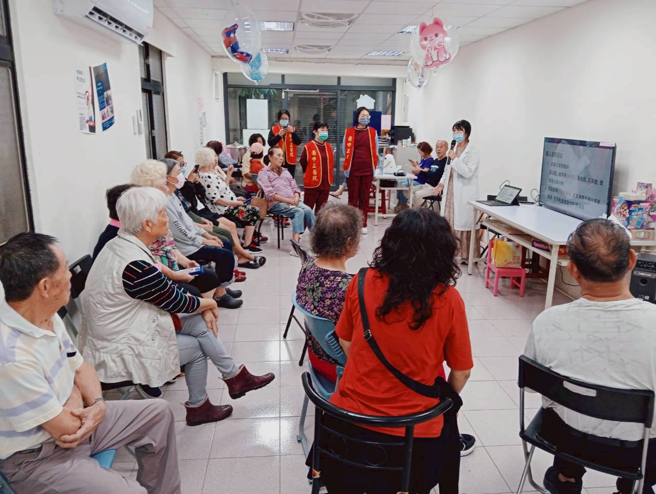 2. 社區醫院就是鄰里好厝邊,今日出席近30位65歲以上之社區民眾,過半數有在服藥慢性病藥物,紛紛肯定本院醫護團隊在每次醫療服務,傾聽長輩需求與悉心回應。大家認真聆聽衛教資訊,像是要控制變差中的腎功能,應按時服藥控制血糖、血壓、血脂,戒菸,控制飲食和多運動,和謹慎使用痠痛貼布及抗生素;如果忘記吃藥了怎麼辦?可以記9點、13點、17點和睡前21點,計算「用藥時間中點」來決定,在這時間之前要吃,超過了就別吃等等。藥師並順著提到每年11月18日至11月24日為「世界抗生素週」,應謹守「四不一要」原則,不主動要求抗生素、不隨便自己買抗生素吃、不吃他人的抗生素、不隨便停藥、要遵守醫囑使用抗生素,以有效減少抗藥性細菌的傳播。最後有里民主動拿了門診單個別諮詢,將先就近在本院就醫,後續視需求轉診亞東醫院追蹤。感謝羅里長精心籌劃關懷據點,安排各式認知促進和體適能活動,邀請本院團隊分享衛教資料,還有為長輩們準備豐富又健康的午餐,讓里民們在熱絡又溫馨的氣氛中一起動健康、不怕老。