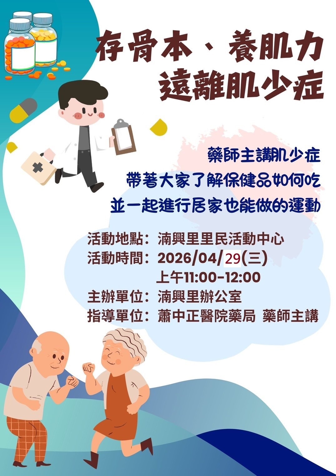 1150429 11-12點 湳興里「存骨本•養肌力」遠離肌少症 延緩失能社區關懷講座!2026.04.29